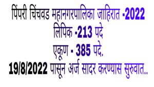 ⭕️ पिंपरी चिंचवड महानगरपालिकच्या स्थायी आस्थापनेवरील गट ‘ब’ व गट ‘ क’ संवर्गातील रिक्त पदे सरळसेवा प्रवेशाने भरण्यासाठी जाहिरातीत प्रसिद्ध करण्यात आली आहे. खाली दिलेल्या लिंक वरून PDF Dawnload करून व्यवस्थित वाचून आपली शैक्षणिक अहर्ता व त्या पदांची शैक्षणिक अर्हता बघुन घ्या व इतर बाबीची पूर्तता करणा-या उमेदवारांकडून ऑनलाईन पध्दतीने अर्ज मागविण्यात येत आहेत.